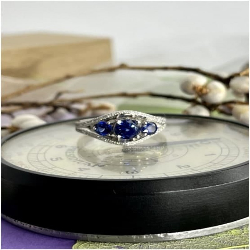 **Обалденное золотое кольцо с тремя идеальными сапфирами по цвету и чистоте.** Центральный камень весом 1,02 карата и диаметром 5,5 мм. Боковые сапфиры по 0,27 карата диаметром по 3,8 мм. В обрамлении двух бриллиантовых дорожек из якутских бриллиантов. Шинка внизу кольца шириной 3,0 мм. Ширина декоративной части 10 мм. Вставка из природных натуральных драгоценных камней сапфиров и бриллиантов (Бриллианты АЛРОСА, Якутия): 59 брл Кр-57 0,180Ct 3/6 ,1 спф Кр 1,020Ct 1/1 ,2 спф Кр 0,540Ct 1/1