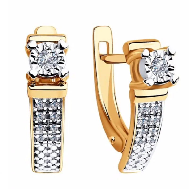 Женские золотые серьги с бриллиантами. Стильные дизайнерские серёжки с классическим английским замком отлично подходят для повседневной носки, а также эффектно дополнят нарядный, вечерний, праздничный или свадебный образ. Современные ювелирные изделия легко сочетаются с любой одеждой. Украшения SOKOLOV (Соколов) приходят в комплекте с подарочной упаковкой, идеально подходят для подарка любимой женщине, девушке, девочке на День рождения, Новый год, 8 марта, день всех влюбленных (14 февраля) или любой праздник, и повод. Значение веса на фото и в характеристиках являются примерными и могут отличаться от фактического. Изделие выполнено из красного золота 585 пробы; Вставка: 16 Бр Круг 17 0,80*0,90 0,048 2/3 А, 2 Бр Круг 57 0,073 3/6 А