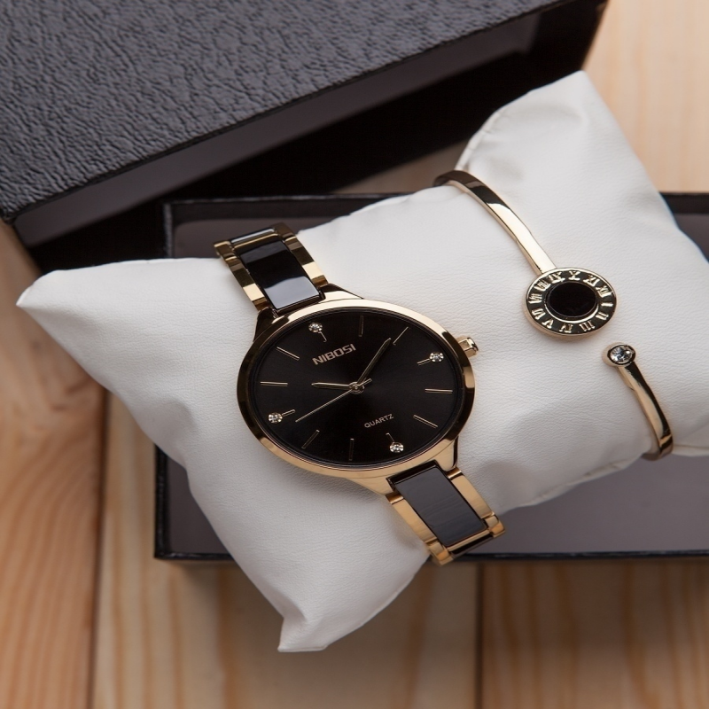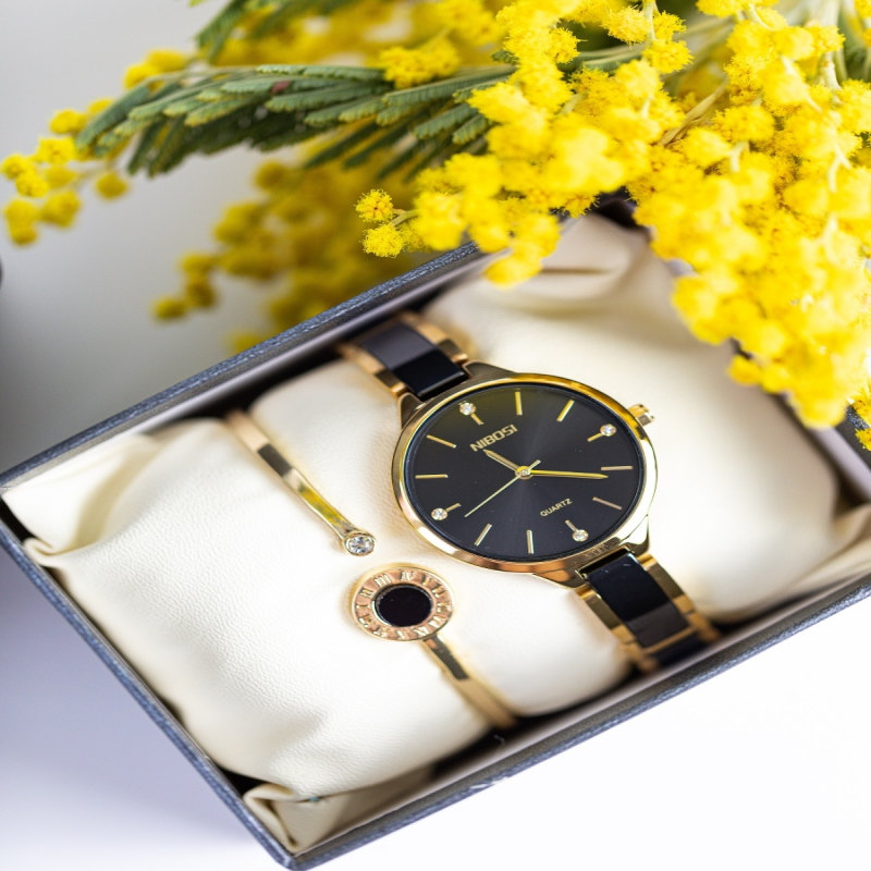 Красивый женский подарочный набор часы с браслетом - шикарный подарок любимой девушке, жене, подруге, коллеге, сестре, маме или бабушке, на День рождение. Благодаря модному дизайну и классическому стилю , любая женщина будет в восторге от такого подарка. Классические женские наручные часы- это модный , современный дизайн. Стильный браслет в подарок. Вам больше не нужно подбирать браслеты под часы, а часы под браслеты. Этот изысканный женский подарочный набор часы с браслетом несомненно понравится каждой даме. Подарочный браслет может немного отличатся от браслета на фото(цветом) Металлический ремешок часов регулируется, лишние звенья снимаются под ваш размер запястья. Качественный японский кварцевый механизм на батарейке. Корпус часов и браслета выполнен из качественного материала- гипоаллергенная нержавеющая сталь, при носке покрытие не стирается ,не темнеет. Часы будут доставлены в подарочной, презентабельной коробке с подушечкой, которая пригодится для хранения женского аксессуара.